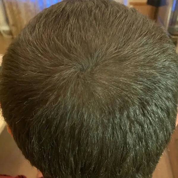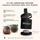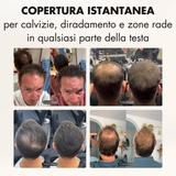 Anche nelle aree che sembrano prive di capelli, rimangono spesso capelli molto sottili o chiari. La polvere si aggrappa proprio a questi per riempire visivamente i vuoti e creare un effetto di densità naturale. È ciò che consente di ottenere un risultato uniforme, anche in caso di forte perdita di capelli.